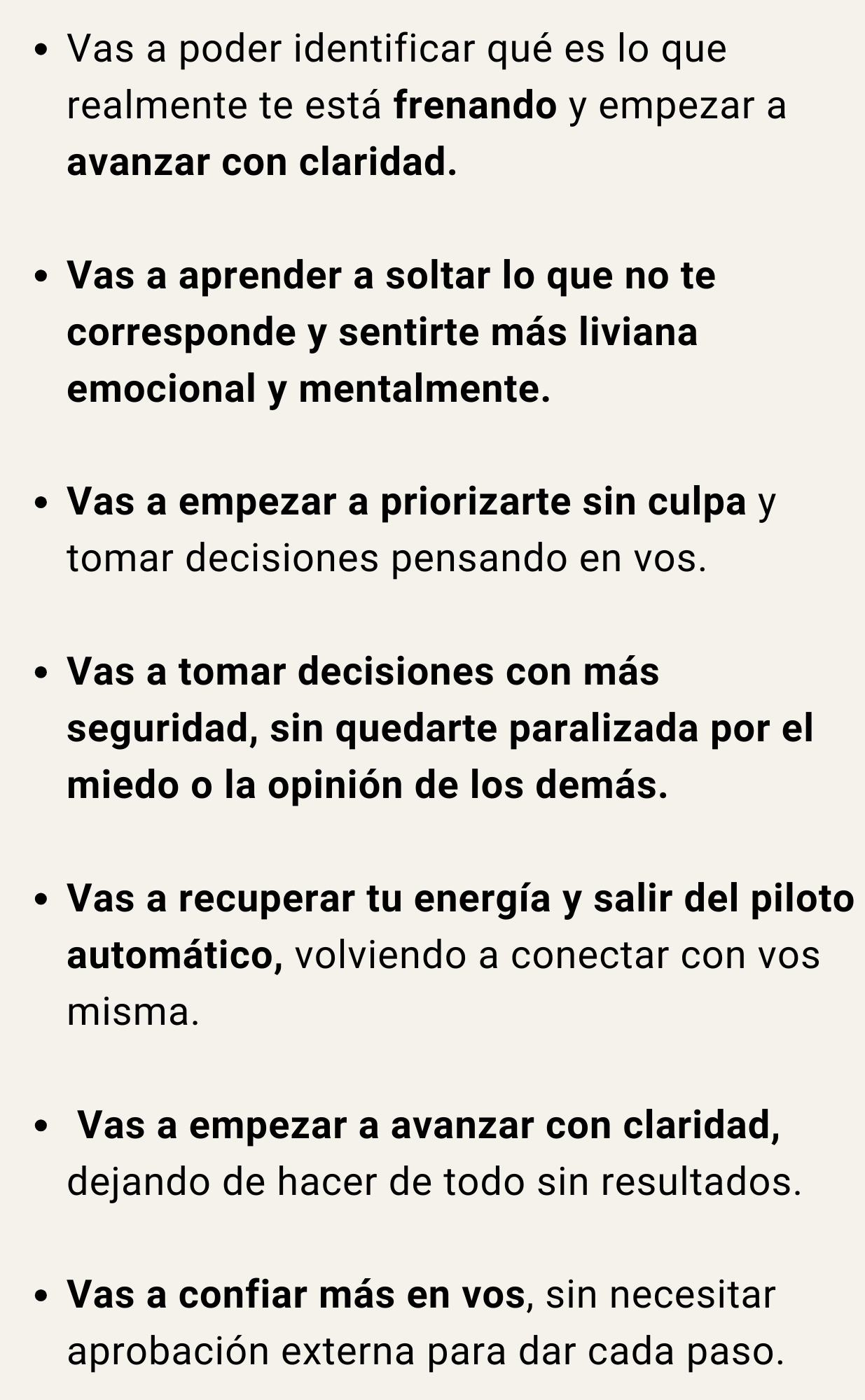 👉 Si sentís que estás en piloto automático, postergándote o sin claridad, este proceso es para vos.